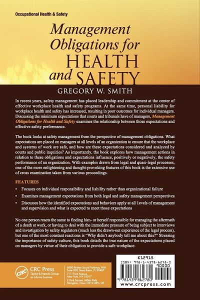In recent years, the safety management field has placed leadership and management commitment at the center of effective workplace health and safety programs. At the same time, personal liability for workplace health and safety has increased, resulting in poor outcomes for individual managers. Discussing the minimum expectations that courts and tribunals have of managers, this book examines the relationship between those expectations and effective safety performance. Using specific case examples for illustration, the author examines whether managers are merely meeting their legal obligations or making a positive contribution to workplace safety and health.