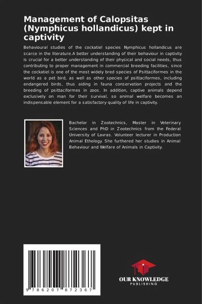 Behavioural studies of the cockatiel species Nymphicus hollandicus are scarce in the literature.A better understanding of their behaviour in captivity is crucial for a better understanding of their physical and social needs, thus contributing to proper management in commercial breeding facilities, since the cockatiel is one of the most widely bred species of Psittaciformes in the world as a pet bird, as well as other species of psittaciformes, including endangered birds, thus aiding in fauna conservation projects and the breeding of psittaciformes in zoos. In addition, captive animals depend exclusively on man for their survival, so animal welfare becomes an indispensable element for a satisfactory quality of life in captivity.