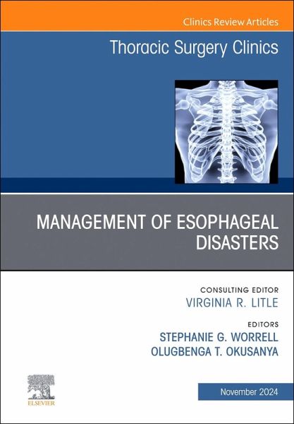 In this issue of Thoracic Surgery Clinics, guest editors Drs. Stephanie G. Worrell and Olugbenga T. Okusanya bring their considerable expertise to the topic of Management of Esophageal Disasters. Esophageal surgery can involve complications such as anastomotic leak, pain, bleeding, infection, and reflux. In this issue, top experts discuss the major complications of key thoracic surgeries, and how surgeons can best handle them. * Contains 11 relevant, practice-oriented topics including endoscopic management of iatrogenic perforations; managing pneumediastinum: do they all need a swallow?; complications after paraesophageal hernia repair; perforated esophageal cancers; paraesophageal hernias with perforations; and more. * Provides in-depth articles on management of esophageal disasters, offering actionable insights for clinical practice. * Presents the latest information on this timely, focused topic under the leadership of experienced editors in the field. Authors synthesize and distill the latest research and practice guidelines to create clinically significant, topic-based reviews.