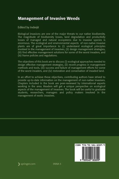 In an effort to achieve these objectives, contributing authors have strived to provide up-to-date information on the management of non-native invasives. Chapters included in the book are peer-reviewed by international experts working in the area. Readers will get a unique perspective on ecological aspects of the management of invasives. The book will be useful to graduate students, researchers, managers and policy makers involved in the management of exotic invasives.