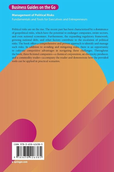 Political risks are on the rise. The recent past has been characterized by a dominance of geopolitical risks, which have the potential to endanger companies, entire sectors, and even national economies. Furthermore, the expanding regulatory framework, growing national debt, and other factors contribute to the escalation of political risks. The book offers a comprehensive and proven approach to identify and manage such risks. In addition to avoiding and mitigating risks, there is an opportunity to cultivate competitive advantages in navigating these challenges. Throughout the book, three fictional companies-a chemical corporation, an electricity producer, and a commodity trader-accompany the reader and demonstrate how the provided tools can be applied in practical scenarios.