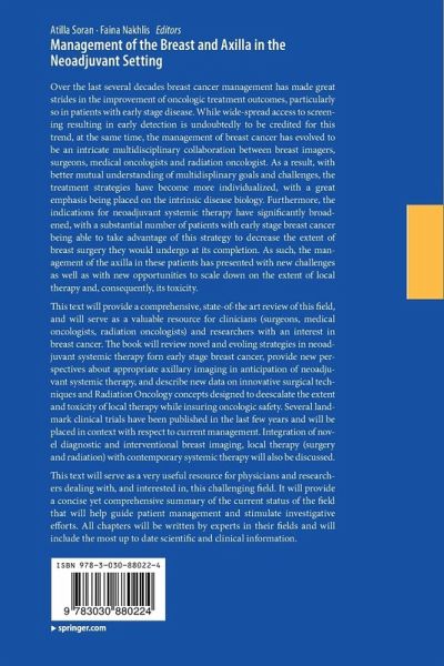 This text will provide a comprehensive, state-of-the art review of this field, and will serve as a valuable resource for clinicians (surgeons, medical oncologists, radiation oncologists) and researchers with an interest in breast cancer. The book will review novel and evoling strategies in neoadjuvant systemic therapy forn early stage breast cancer, provide new perspectives about appropriate axillary imaging in anticipation of neoadjuvant systemic therapy, and describe new data on innovative surgical techniques and Radiation Oncology concepts designed to deescalate the extent and toxicity of local therapy while insuring oncologic safety. Several landmark clinical trials have been published in the last few years and will be placed in context with respect to current management. Integration of novel diagnostic and interventional breast imaging, local therapy (surgery and radiation) with contemporary systemic therapy will also be discussed.