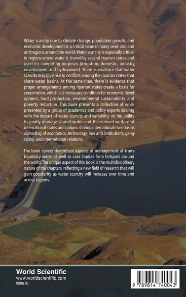 Water scarcity due to climate change, population growth, and economic development is a critical issue in many semi-arid and arid regions around the world. Water scarcity is especially critical in regions where water is shared by several riparian states and used for competing purposes (irrigation, domestic, industry, environment, and hydropower). There is evidence that water scarcity may give rise to conflicts among the riparian states that share water basins. At the same time, there is evidence that proper arrangements among riparian states create a basis for cooperation, which is a necessary condition for economic development, food production, environmental sustainability, and poverty reduction. This book presents a collection of work presented by a group of academics and policy experts dealing with the impact of water scarcity and variability on the ability to jointly manage shared water and the derived welfare of international states and nations sharing international river basins, consisting of economics, technology, law and institutions, geography, and international relations. The book covers theoretical aspects of management of transboundary water as well as case studies from hotspots around the world. The unique aspect of this book is the multidisciplinary nature of the chapters, reflecting a new field of research that will gain popularity as water scarcity will increase over time and across regions. The chapters from the book were presented at the "Management of Transboundary Water Resources under Scarcity: Perspectives on Agriculture and Food Security" workshop held at The Hebrew University of Jerusalem, Israel, from June 22 to 23, 2015.