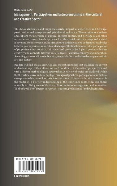 This book elucidates and maps the societal impact of experience and heritage, participation, and entrepreneurship in the cultural sector. The contributions address and explore the relevance of culture, cultural entities, and heritage as collective memories and reservoirs of experience for other social systems, change and societal innovators like entrepreneurs. Insofar, cultural activities can be understood as a bridge between past experiences and future challenges. The first key focus is the participation of people in various contexts, initiatives, and projects. Such participation unleashes creativity and connects different societal layers - culture, economy, and innovation. Accordingly, a second focus is the entrepreneurial efforts and ideas that originate within arts and culture. Readers will find critical empirical and theoretical studies that challenge the current understandings of the cultural sector from different theoretical perspectives and with different methodological approaches. A variety of topics are explored within the thematic areas of cultural heritage, managerial practices, participation, and cultural entrepreneurship, as well as their inter-relations. Ultimately the aim is to provide the reader with a better understanding of the sometimes conflicting, sometimes mutually fertilizing areas of the arts, culture, business, management, and innovation. The book will be of interest to scholars, students, professionals, and policymakers.