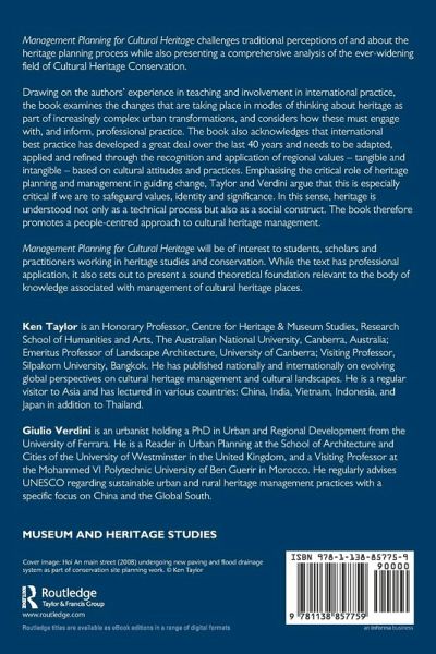 Drawing on the authors' experience in teaching and involvement in international practice, the book examines the changes that are taking place in modes of thinking about heritage as part of increasingly complex urban transformations, and considers how these must engage with, and inform, professional practice. The book also acknowledges that international best practice has developed a great deal over the last 40 years and needs to be adapted, applied and refined through the recognition and application of regional values - tangible and intangible - based on cultural attitudes and practices. Emphasising the critical role of heritage planning and management in guiding change, Taylor and Verdini argue that this is especially critical if we are to safeguard values, identity and significance. In this sense, heritage is understood not only as a technical process but also as a social construct. The book therefore promotes a people-centred approach to cultural heritage management.