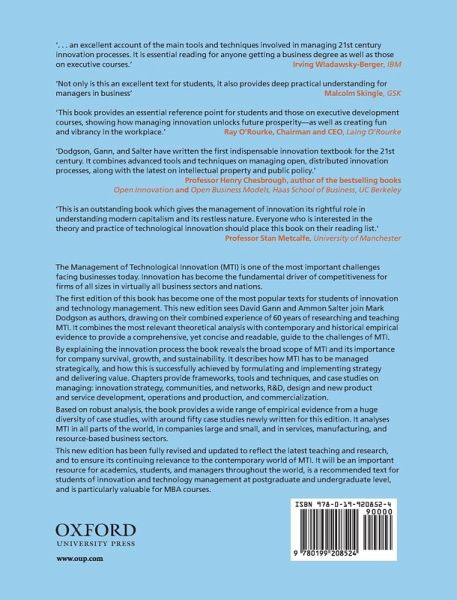 The first edition of this book has become one of the most popular texts for students of innovation and technology management. This new edition sees David Gann and Ammon Salter join Mark Dodgson as authors, drawing on their combined experience of 60 years of researching and teaching MTI. It combines the most relevant theoretical analysis with contemporary and historical empirical evidence to provide a comprehensive, yet concise and readable, guide to the challenges of MTI.