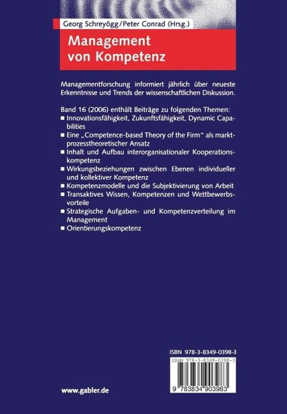 Neuester Band der angesehenen Reihe"Managementforschung"Renommierte Experten setzen sich mit dem Thema Kompetenzen in Organisationen facettenreich auseinander.