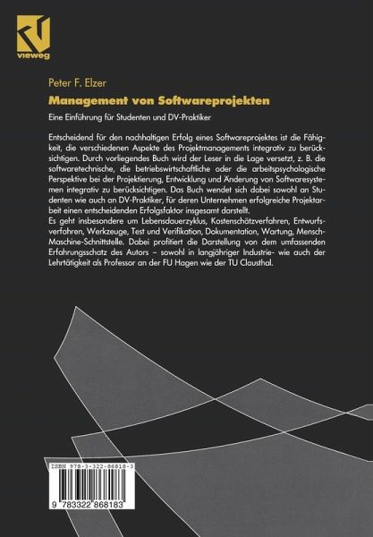 Das Buch gibt eine Einführung, die alle Aspekte des Projektmanagements von Softwareprojekten berücksichtigt. Dabei geht der Autor von der Einsicht aus, daß eine große Anzahl multidimensionaler Aspekte integrativ zu berücksichtigen sind - Aspekte, die sich in der Art eines Netzwerkes gegenseitig beeinflussen.