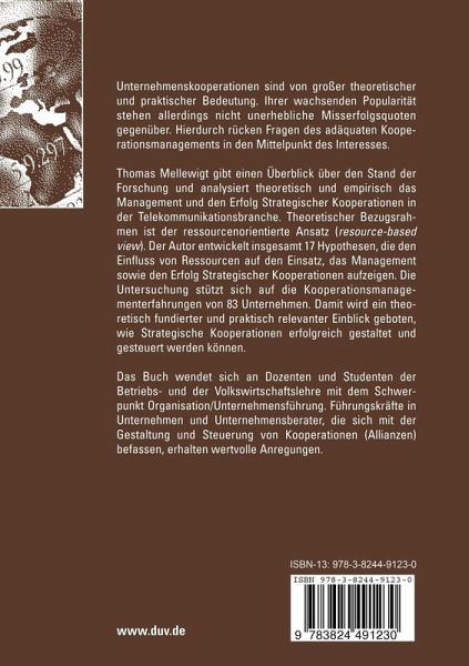 Thomas Mellewigt gibt einen Überblick über den Stand der Forschung und analysiert theoretisch und empirisch das Management und den Erfolg Strategischer Kooperationen in der Telekommunikationsbranche. Theoretischer Bezugsrahmen ist der ressourcenorientierte Ansatz (resource-based view). Der Autor entwickelt insgesamt 17 Hypothesen, die den Einfluss von Ressourcen auf den Einsatz, das Management sowie den Erfolg Strategischer Kooperationen aufzeigen. Die Untersuchung stützt sich auf die Kooperationsmanagementerfahrungen von 83 Unternehmen. Damit wird ein theoretisch fundierter und praktisch relevanter Einblick geboten, wie Strategische Kooperationen erfolgreich gestaltet und gesteuert werden können.