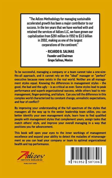 To be successful, managing a company or a team cannot take a one-size-fits-all approach, and it cannot rely on the "ideal" manager or "perfect" executive because none exists in the real world. Neither are all management styles equal. Knowing the differences in management styles - the good, the bad and the ugly - is as critical as ever. Some styles lead to peak performance and superb organizational success, while others lead to mismanagement, finger-pointing, and failure. Can you tell the difference in this complex world characterized by constant change, unrealistic expectations, and fear of conflict? By improving your understanding of the full spectrum of the styles that managers all the way up to the senior leadership team utilize, you can better identify your own management style, learn how to find qualified people with management styles that complement yours, assign tasks that match others' style, and improve your overall managing in a way that positions you for advancement. This book will open your eyes to the inner workings of management excellence and expand your ability to detect the maladies of mismanagement so you can lead your company or team to optimal organizational health and top performance.