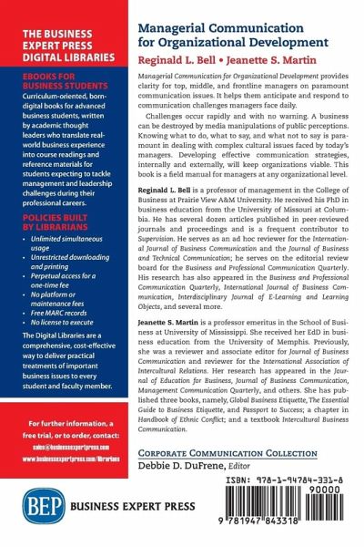Managerial Communication for Organizational Development provides clarity for top, middle, and frontline managers on paramount communication issues It helps them anticipate and respond to communication challenges managers face daily. Challenges occur rapidly and with no warning. A business can be destroyed by media manipulations of public perceptions. Knowing what to do, what to say, and what not to say is paramount in dealing with complex cultural issues faced by today's managers. Developing effective communication strategies, internally and externally, will keep organizations viable. This book is a field manual for managers at any organizational level.