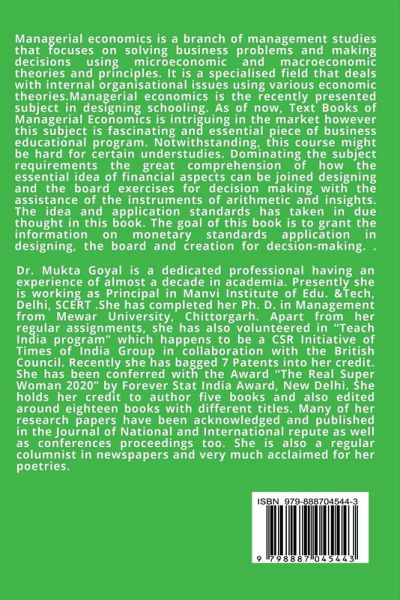 Managerial economics is a flood of the executives concentrate on that accentuates principally tackling business issues and direction by applying the hypotheses and standards of microeconomics and macroeconomics. It is a particular stream managing an association's interior issues utilizing different financial speculations. The financial aspect is an essential piece of any business. This single idea determines all the business suppositions, estimating, and speculations. There is administrative financial aspects, significance more or less. This book will be useful for engineering and engineering diploma students of various universities, it is also useful for MBA students. There are Six main units with Introduction to managerial economics, International Trade, Balance of Trade and Payment, Theory of Costing, Introduction to Macro Economics, Demand Analysis, and Theory of Production.