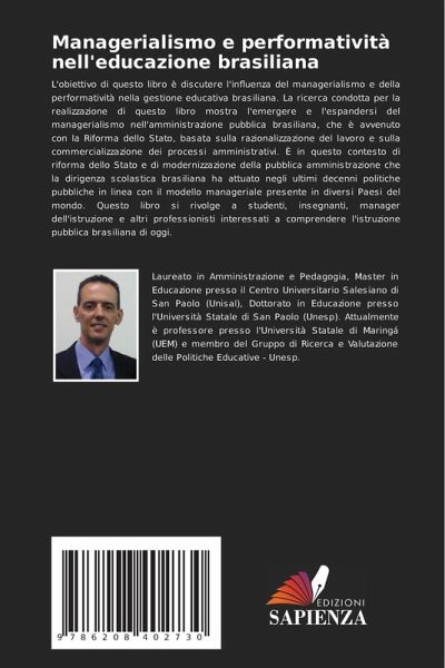 L'obiettivo di questo libro è discutere l'influenza del managerialismo e della performatività nella gestione educativa brasiliana. La ricerca condotta per la realizzazione di questo libro mostra l'emergere e l'espandersi del managerialismo nell'amministrazione pubblica brasiliana, che è avvenuto con la Riforma dello Stato, basata sulla razionalizzazione del lavoro e sulla commercializzazione dei processi amministrativi. È in questo contesto di riforma dello Stato e di modernizzazione della pubblica amministrazione che la dirigenza scolastica brasiliana ha attuato negli ultimi decenni politiche pubbliche in linea con il modello manageriale presente in diversi Paesi del mondo. Questo libro si rivolge a studenti, insegnanti, manager dell'istruzione e altri professionisti interessati a comprendere l'istruzione pubblica brasiliana di oggi.