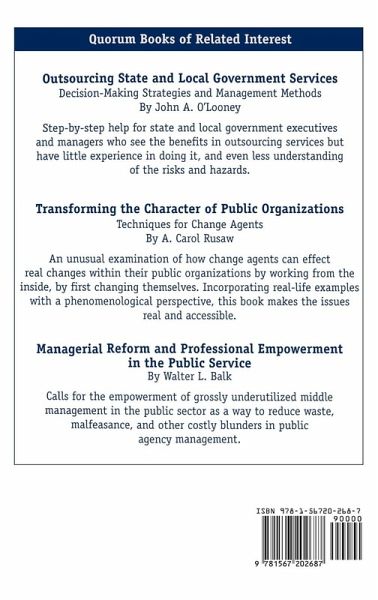 A public manager herself and successful consultant in the public sector, Camaron Thomas argues for a whole new way of being a public manager. She introduces a new paradigm for how the public sector should work: a collaborative, functional environment in which fast-paced, purposeful change, civility, and initiative are actually the norm. Real, positive change is part of every employee's job; control in the public sector must be replaced with shared responsibility, and for her new paradigm to be realized it must be understood and internalized by managers one at a time. This book argues for a whole new way of being a public manager, one that affects what managers do, how they do it, and who they are as people. It replaces the concept of agencies and control with shared responsibility, and tests the idea in the arena of public sector budgeting. Most importantly, it recognizes that it is managers themselves who must change, if the profession is ever going to improve. This book is written for the 19 million plus current public sector managers, who grind through every day. It's also written for their successors, for whom the task only promises to be more difficult.