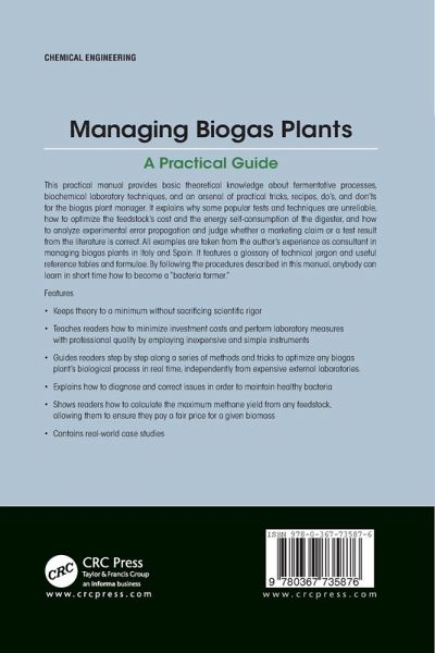 This manual provides theoretical knowledge about fermentative processes, biochemical laboratory techniques, and an arsenal of practical tricks, recipes, do's, and don'ts for the biogas plant manager. It includes case studies and a glossary of technical jargon and useful reference tables and formulae.