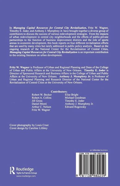 First Published in 2000. This book and its companion volume, Human Capital Investment fo r Central City Revitalization, are the products of a two-year endeavor by the National Center for the Revitalization of Central Cities. The National Center is a consortium of academic institutions that analyzes critical problems facing America's central cities, evaluates strategies to address those problems, and recommends policy alternatives.