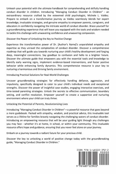 Transform Challenging Behaviors-Support, Guide, and Empower Children with Conduct DisorderChildren with conduct disorder often struggle with aggression, defiance, rule-breaking, and social difficulties, making everyday life challenging for parents, educators, and caregivers. But with the right strategies, these challenges can be managed effectively, fostering positive behavioral change and emotional growth.In Managing Conduct Disorder in Children, discover evidence-based interventions, practical parenting techniques, and school-based strategies to create a supportive environment that nurtures lasting change. This comprehensive guide provides expert insights into understanding the causes, symptoms, and long-term outcomes of conduct disorder, equipping you with the tools needed to help children develop emotional regulation, empathy, and positive social skills.Inside this book, you'll learn:Conduct disorder symptoms and early warning signs-how to recognize and address them Causes of conduct disorder-understanding risk factors and behavioral triggers Parenting strategies for conduct disorder-techniques for discipline, communication, and emotional support School interventions for conduct disorder-how educators can create inclusive learning environments Behavioral interventions for conduct disorder-evidence-based therapies and management techniques Conduct disorder treatment guidelines-approaches including therapy, medication, and lifestyle changes Positive behavioral change strategies-fostering emotional intelligence and conflict resolution skills Conduct disorder vs. oppositional defiant disorder (ODD)-understanding key differences Managing conduct disorder and ADHD comorbidity-strategies for dual diagnosis cases Long-term outcomes of conduct disorder-prevention and intervention for a better future By implementing proven techniques, parents, teachers, and mental health professionals can help children with conduct disorder build resilience, develop self-control, and create positive relationships. Whether you're a caregiver seeking practical parenting strategies or a professional looking for research-backed interventions, this book provides the essential guidance to empower children and support their growth toward a healthier, more successful future.Unlock the tools to manage conduct disorder and inspire lasting change today!