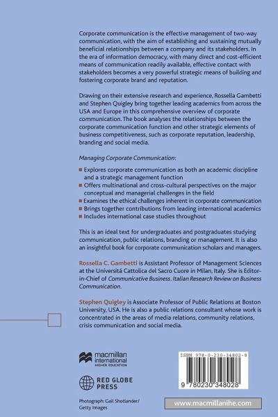 Preface; E.T.Brioschi & O.Lerbinger.- Introduction.- PART I: CORPORATE COMMUNICATION CONCEPTUAL FRAMEWORK, ORGANIZATIONAL ROLE AND RESEARCH ISSUES.- Corporate Communication as an Academic Discipline and a Strategic Management Function; R.Gambetti.- Communicative Business: the Power of Corporate Communication to Manage Complexity; E.T.Brioschi.- Corporate Communication and Value Creation (and Destruction) in the Firm's Evolutionary Process; R.Fiocca.- Strategic Communication and the Entrepreneurial Role of the Corporate Communication Officer; E.Invernizzi & S.Romenti.- Corporate Branding and Stakeholder Engagement in Corporate Communication Management: the Link Between Identity and Reputation; R.Gambetti & S.Biraghi.- Corporate Reputation Robustness. Towards a Better Understanding of Reputational Risk; F.Lurati.- The Conceptual Bridge Between Corporate and Marketing Communication; P.Kitchen.- Convergencies and Divergencies Between Advertising and Public Relations; D.Tena Parera & D.Roca.- Corporate Responsibility Disclosure and Communication; R.Gambetti & M.Giovanardi.- Measuring Corporate Communication: an Overview and a Model Proposal; S.Romenti.- Evaluating Corporate Reputation: the Link with Corporate Financial Performance; M.Schweiger & S.Raithel.- Current Research Frontiers on Corporate Communication: a Postmodern Qualitative Insight; G.Graffigna.- PART II: CORPORATE COMMUNICATION CHALLENGES AND OPPORTUNTIES IN A MARKETPLACE WITHOUT BOUNDARIES.- Public Relations in International Management; O.Lerbinger.- The Emergence of the Social Web and its Impact on Corporate Communication Practices; S.Quigley.- The Power of Transparency, Authenticity and Empathy as Drivers of Corporate Stakeholder Engagement; S.Quigley.- The New Reputation-centric CEOs and how to Counsel Them; P.Morrissey.- Reflections on the Power Point: Where Corporate Communications, Power, and New Computer Applications Intersect; E.Downes.- The Organization of the Corporate Communication Function; D.Wright.- From Corporate Responsibility to Shared Responsibility: The New Driver of Co-creation and Innovation; J.Yohannan.- PART III: BEST PRACTICES IN CORPORATE COMMUNICATION.- To be Confirmed.- Conclusion.- Endnote; D.Bodega & T.Fiedler.- References.
