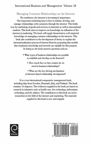 One important marketing issue is how to initiate, develop, and manage relationships with customers through the Internet. This book aims to improve our knowledge on utilization of the Internet in marketing. It offers theoretical as well empirical knowledge on managing customer relationships on the Internet.