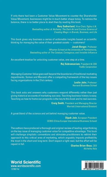 How do you take an individual who has never done business with your organization and gradually transform them into the best possible customer? How do you decide how much to spend on various marketing actions? How do you think about the pricing decision with a view to optimizing the value of your customers as assets? Where do you start, what tools do you use, and what heuristics are useful in making these decisions? This book attempts to answer questions such as these. The one-sentence summary of the answer, though, is simple - hold the individual's hands and walk them up a value ladder, one step at a time. This book is written for an advanced student of business and the practicing manager. It presents an integrated view of the marketing function. In particular, it focuses on all the activities that a firm engages in to create and manage value - not just the customer-facing activities. It links the traditional views of customer value with the finance, accounting, human resources, organizational behaviour, information technology and operations functions of the organization. It draws on the science of behaviour change and the data sciences to present a contemporary view of the customer value function. The content is meant to be prescriptive - it describes a process for value creation and management, yet analytical; theoretical, yet empirically driven. It urges the reader to think about the customer value function to be organized along activities that the firm would like the customers to engage in, not activities that the firm engages in. It presents a framework that is not only conceptually driven but also has a sound mathematical basis.