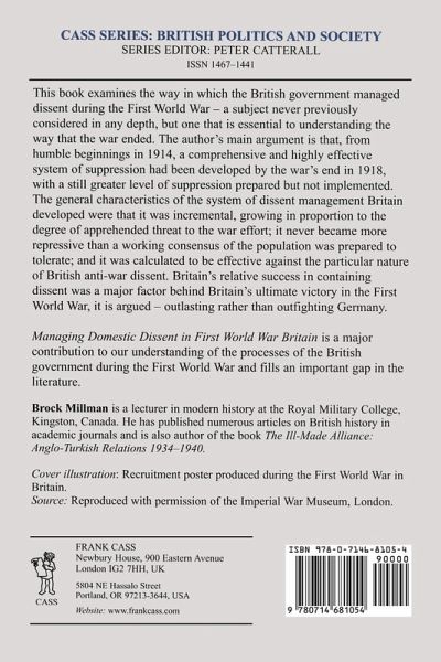 The author argues that the way the British Government managed dissent during World War I is important for understanding the way that the war ended. He argues that a comprehensive and effective system of suppression had been developed by the war's end in 1918, with a greater level in reserve.