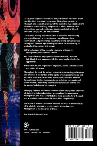 As issues of employee involvement and participation once more evoke considerable controversy, this textbook provides an accessible overview of the main strands, perspectives and debates in current thinking and practice. It adopts a comparative international approach, addressing developments in the United Kingdom and mainland Europe, the United States and elsewhere.