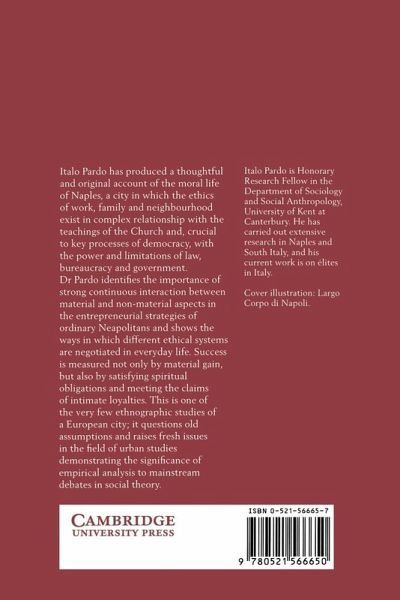 Italo Pardo has produced a thoughtful and original account of the moral life of Naples, a city in which the ethics of work, family and neighbourhood exist in complex relationship with the teachings of the church and, crucial to key processes of democracy, with the power and limitations of law, bureaucracy and government. Dr Pardo identifies the importance of strong continuous interaction between material and non-material aspects in the entrepreneurial strategies of the ordinary Neapolitan and shows the ways in which different ethical systems are negotiated in everyday life. Success is measured not only by material gain, but also by satisfying spiritual obligations and meeting the claims of intimate loyalties. This is one of the very few ethnographic studies of a European city; it questions old assumptions and raises fresh issues in the field of urban studies, demonstrating the significance of empirical analysis to mainstream debates in social theory.