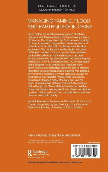 China suffers frequently from many types of natural disasters, which have affected the lives of many millions of Chinese. The steps which the Chinese state has taken to prevent disasters, mitigate their consequences, and reconstruct in the aftermath of disasters are therefore key issues. This book examines the single metropolis of Tianjin in northern China, a city which has suffered particularly badly from natural disasters - the great famine of 1958-61, the great flood of 1963 and the great earthquake of 1976. It discusses how the city managed these disasters, what policies and measures were taken to prevent and mitigate disasters, and to promote reconstruction afterwards. It also explores who suffered from and who benefited from the disasters. Overall, the book shows how disaster management was erratic, sometimes managed highly efficiently and in other cases disappointingly delayed and inept. It concludes that, although the Maoist state possessed formidable resources, disaster management was always constrained by other political and economic considerations, and was never an automatic priority.