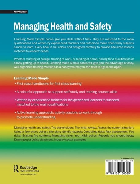 Learning Made Simple books give you skills without frills. They are matched to the main qualifications and written by experienced teachers and authors to make often tricky subjects simple to learn. Every book is designed carefully to provide bite-sized lessons matched to readers' needs.Using full colour throughout and written by leading teachers and writers, Learning Made Simple books build on a rich legacy of over 50 years as leading publishers helping to learn new skills and develop their talents.Whether studying at college, training at work, or reading at home, aiming for a qualification or simply getting up to speed, Learning Made Simple Books will give readers the advantage of easy, well-organized training materials in a handy volume you can refer to again and again. These titles will be promoted direct to training companies and learners, and individuals will be urged to buy them not only by college lecturers but also by trainers at work. These titles will be core stock for years to come.The books are written by experienced HR trainers and will be typeset by PK McBride (an experienced teacher and author of several Learning Made Simples himself). PK McBride has a thorough understanding of the ethos of the LMSs books and his involvement will insure that all titles have a layout and style consistent with the brand. Jacqueline Jeynes has run her own Management Consultancy business Opal Services,for 19 years, providing a wide range of management skills training across all industry sectors. She has appeared as an expert on 10 BBC TV programmes on H&S for small firms. She has regularly published articles in professional journals. She was a Commissioner on the Independent Inquiry into Drug Testing in the Workplace 2005 and been a member of many national and European Commission committees. A member of IBA and IOSH, she has just been awarded Specialist Business Adviser of the Year 2006-7. Currently a business adviser, tutor on Durham University MBA and supervisor-tutor for Aston University undergraduates on work placement year. She has published two books with Butterworth-Heinemann.