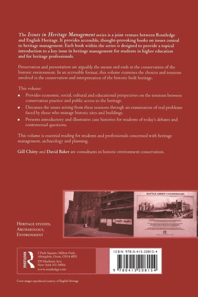 Managing Historic Sites and Buildings looks at the choices and the tensions that exist in conservation and interpretation of the heritage. Preservation and presentation are central activities, arguably means and ends in the conservation of the historic environment. But are they self-reinforcing or do they work against each other? In a series of essays which span form prehistoric sacred site to Second World war military remains, from medieval monastery to 1970s housing estate, we look at contemporary concerns and debates about the way the past is shaped, physically and metaphorically , by these two aspects of heritage management. Starting from the position that the fundamental purpose of the whole process is to communicate understanding about the human past, these essays examine how far the ideologies, strategies, tactics and techniques of preservation and presentation are mutually supportive. the success of integrated approaches that are inclusive of social, economic and green environmental concerns is understood, but the value of developing truly sustainable management for individual historic places is only just becoming evident. At the heart of such an approach lies a crucial relationship between the activity of preserving historic places and of promoting understanding of their significance.