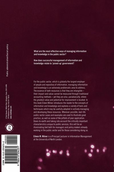 For the public sector, which is globally the largest employer of people and repository of information, managing information and knowledge is an extremely problematic area to address. The essence of both resources is that they are intangible, their impact and value cannot be measured through traditional accounting methods, yet they are also, paradoxically, where the greatest value and potential for improvement is located. In this book Eileen Milner introduces the reader to the concepts of information and knowledge and explores a variety of tools and techniques which may be usefully adopted in actively managing and developing these resources. Wherever possible real-life public sector case studies and examples are used to illustrate good practice, as well as some of the pitfalls of poor application. Down-to-earth and taking into account the critically important characteristics unique to public services, this will be an illuminating text both for managers and policy makers already working in the public sector and for those considering doing so.