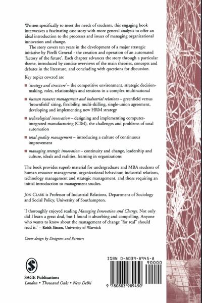 `Jon Clark's book, where the relationship between technology and man is explored, looks at just one establishment, Pirelli General's Aberdare suite. An extremely well-written sociological account of more than 10 years of massive technological, human resource and competitive change in one factory, it analyses the impact of automation and its implications for the workforce and the future of organisational life. It covers the conflicts, the decision-making processes, the failures and successes of this venture, in a narrative form that makes a cogent case study of green- and brown-field development in the automated factory of the future.... also a good practice example of technological innovation and creative human-resource management - Times Higher Educational Supplement