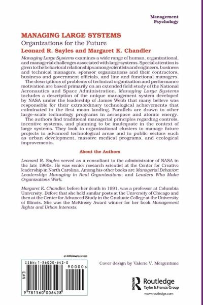 The descriptions of problems of technical organization and performance motivation are based primarily on an extended field study of the National Aeronautics and Space Administration. Managing Large Systems includes a description of the unique management system developed by NASA under the leadership of James Webb that many believe was responsible for their extraordinary technological achievements that culminated in the first moon landing. Parallels are drawn to other large-scale technology programs in aerospace and atomic energy.