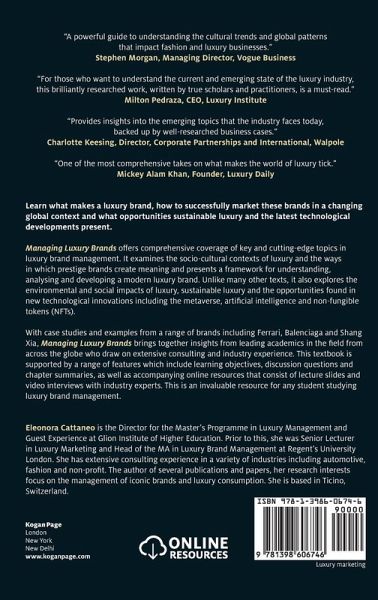 Learn what makes a luxury brand, how to successfully market them in a changing global context and what opportunities sustainable luxury and the latest technological developments present. Managing Luxury Brands offers comprehensive coverage of key and cutting-edge topics in luxury brand management. Examining the socio-cultural contexts of luxury and the ways in which prestige brands create meaning, it presents a framework for understanding, analysing and developing a modern luxury brand. Unlike many other texts, it also explores the environmental and social impact of luxury, sustainable luxury and the opportunities of new technological innovations including the metaverse, artificial intelligence and non-fungible tokens (NFTs). With case studies and examples from a range of brands including Ferrari, Balenciaga and Shang Xia, Managing Luxury Brands brings together insights from leading academics in the field from across the globe who draw on extensive consulting and industry experience. Supported by a range of features which include learning objectives, discussion questions and chapter summaries, accompanying online resources consist of lecture slides and video interviews with industry experts. This textbook is an invaluable resource for any student studying luxury brand management.