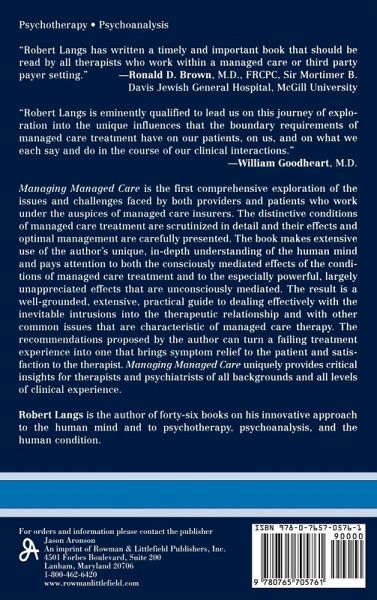 This book is the first comprehensive study of the managed care therapeutic situation, its pitfalls, and its rewards. It is grounded in an in-depth understanding of the human mind and of conditions of this treatment modality and it offers hands-on recommendations to therapists of all backgrounds and experience regarding both commonly recognized and largely overlooked problems that arise under these circumstances.