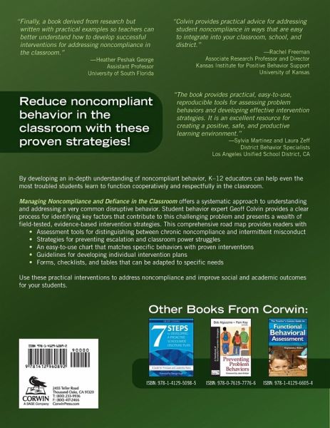 Foreword by Randy Sprick Acknowledgments About the Author Introduction Part I. Understanding Noncompliant Behavior 1. Urgency of the Problem 2. Defining Noncompliant Behavior 3. Systematically Assessing Noncompliant Behavior Part II. Designing Intervention Plans for Noncompliant Behavior 4. Immediate Triggers 5. Setting Events 6. Effects of the Noncompliant Behavior 7. Putting It All Together 8. The Road Map Appendices References Index