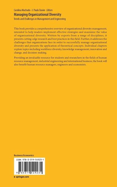 This book provides a comprehensive overview of organizational diversity management, intended to help readers implement effective strategies and maximize the value of organizational diversity. Written by experts from a range of disciplines, it presents cutting-edge research and best practices in this field. Further, it addresses the challenges that organizations face in order to successfully manage organizational diversity and presents the application of theoretical concepts. Individual chapters explore topics including workforce diversity, knowledge management, innovation and change, and decision-making.