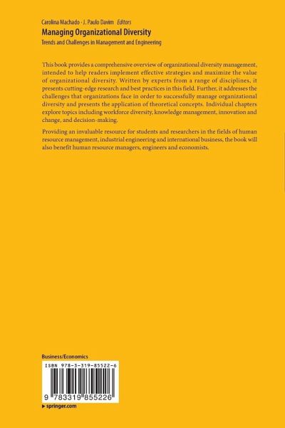 This book provides a comprehensive overview of organizational diversity management, intended to help readers implement effective strategies and maximize the value of organizational diversity. Written by experts from a range of disciplines, it presents cutting-edge research and best practices in this field. Further, it addresses the challenges that organizations face in order to successfully manage organizational diversity and presents the application of theoretical concepts. Individual chapters explore topics including workforce diversity, knowledge management, innovation and change, and decision-making.