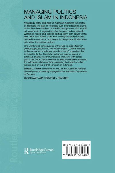 This book examines the politics of Islam and the state in Indonesia over recent decades, during which time there has been a notable resurgence of Islamic political movements. It argues that after a period in the late 1980s and 1990s, when the state worked to bring religious authority and institutions within state-prescribed limits in order to support the official state ideology and political stability, there was a change whereby Suharto incorporated Muslim interests within the political system. One unintended consequence of this was to raise Muslims' political expectations and to mobilise Muslim political interests in the context of broadening 'pro-democracy' opposition which contributed to the downfall of Suharto's regime. Based on extensive original research, including interviews with participants, the book charts the shifts in relations between Islam and the Indonesian state over time, assessing the impact on other groups, and on the cohesion of Indonesia overall.