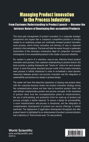 This book puts management of product innovation in a corporate strategic perspective and argues that a company's competitive position is strongly related to an underlying unique and continually renewed product innovation work process, which drives innovation and delivery of new or improved products in the marketplace. The book will take the reader through a systematic examination of the necessary consecutive steps for companies' successful development of non-assembled products in the cluster of process industries. For readers in search of a seamless, easy-to-use, effective formal product innovation work process, from customer understanding to product launch, this book provides a guiding framework and "hands-on" advice for work process design. A novel five-phase structural process model of the product innovation work process is initially introduced in order to orchestrate a more dynamic interaction between product and process innovation and the integration of sustainability and product eco-design in product design. The reader will learn first about the importance of aligning new product ideas with the corporate business model and product innovation strategy during the contextualization phase and then how to transform product ideas into well-defined complementary product and process concepts. In the movement of product ideas from the conceptualization phase to industrialization, the use of pilot-planting and production trials for scale-up of product and process concepts is further explored. To secure a design for processability, a novel industrialization sub-process is introduced, and the integration of complementary development of product and service offerings is further examined. The deployment of application development throughout and after product launch is highlighted for an enhancement of product commercialization and a reduction of "time to break even" for new products.