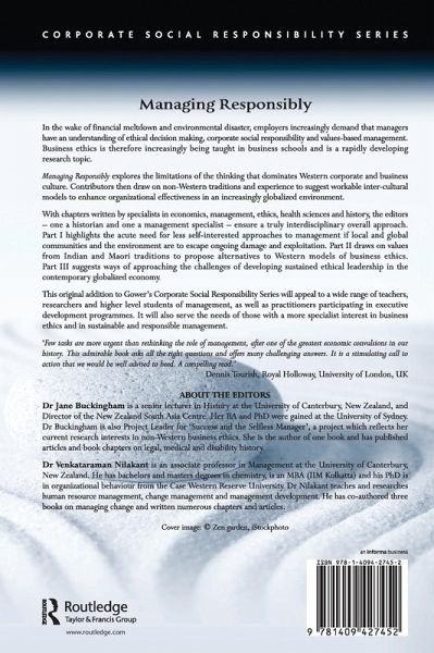 Bringing together the thoughts of scholars looking for alternatives to the self-interest maximization so characteristic of existing corporate governance, Managing Responsibly explores the limitations of the thinking that dominates Western corporate and business culture. Contributors draw on non-Western traditions and experience to suggest workable inter-cultural models that can enhance organizational effectiveness and help to avoid damage to and exploitation of communities and the environment. Chapters written by specialists in economics, management, ethics, health sciences and history ensure a truly interdisciplinary approach. The book highlights the acute need for less self-interested approaches to management. In drawing on values from Indian and Maori traditions it proposes alternatives to Western models of business ethics and suggests ways to develop sustained ethical leadership in the contemporary globalised economy.