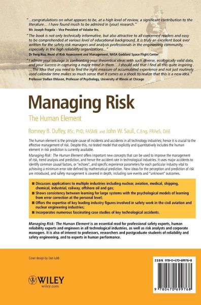 Managing Risk: the Human Element is an essential read for professional safety experts, human reliability experts and engineers in all technological industries, as well as risk analysts, corporate managers and statistical analysts. It is also of interest to professors, researchers and postgraduate students of reliability and safety engineering, and to experts in human performance.