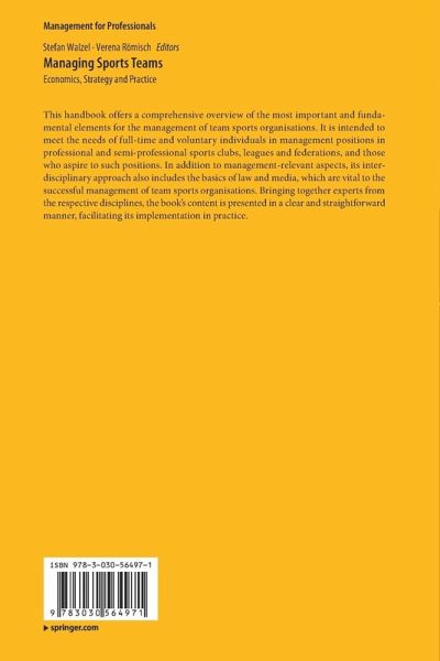 This handbook offers a comprehensive overview of the most important and fundamental elements for the management of team sports organisations. It is intended to meet the needs of full-time and voluntary individuals in management positions in professional and semi-professional sports clubs, leagues and federations, and those who aspire to such positions. In addition to management-relevant aspects, its interdisciplinary approach also includes the basics of law and media, which are vital to the successful management of team sports organisations. Bringing together experts from the respective disciplines, the book's content is presented in a clear and straightforward manner, facilitating its implementation in practice.