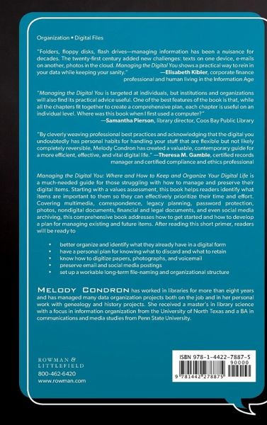 Managing the Digital You: Where and How to Keep and Organize Your Digital Life is the guide to managing and preserving digital items. Covering multimedia, non-digital documents, financial and legal documents, and social media archiving, this comprehensive text addresses how to get started and develop a plan for managing existing and future items.