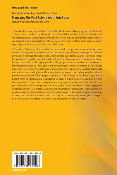 This edited book on South Asia is committed to a presentation of indigenous understandings and knowledge around the organizing, religion, language and cultural production through the lens of anti, post and de-colonial thought. This book forces the reader to consider not just what we know but how and where we know and can be instrumental in identifying and challenging dominant modes of management knowledge production. The decolonial movement is closely associated with scholars like Walter Mignolo, Anibal Quijano and others who expose how Western rationality and science, emanating from the enlightenmentproject, are being used by colonial powers to consolidate their imperial projects. The authors in this book argue that a potent form of colonization is epistemic in nature. This book series seeks to present cutting-edge, critical, interdisciplinary, and geographically and culturally diverse perspectives on the contemporary nature, experience and theorization of managing and organizing in post-colonial location under conditions of coloniality. These conditions subsume ongoing and new forms of colonisation/imperialism, and complex resistances to them, and lives lived outside them, and may be drawn out and investigated in regard to a multiplicity of different business- and management-related topics.