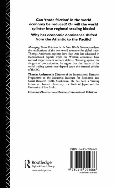 Managing Trade Relations in the New World Economy analyses the implications of the new world economy for global trade. Thomas Andersson explores how manufactured exports have increased exponentially while the western economies have accrued massive current account deficits. Warning against the dangers of protectionism, he argues that the future of the world trading system, may depend upon the external policies of the EC.