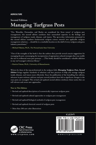 Written by top turfgrass professionals, this second edition of a bestseller presents hundreds of solutions and best practices to help you manage turfgrass weeds, diseases, and insects more effectively. It explains how to integrate cultural, biological, and chemical management tactics to ensure quality and functional turf on lawns, athletic fields, and golf courses. Rather than simply relying on a pesticide solution, the authors discuss how to fine-tune cultural practices to optimize the competitiveness of your turfgrass against the pests that inevitably become part of any ecosystem.