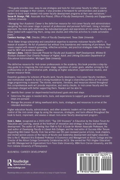 "Vicki Baker brings scholarship and consultation expertise to examine midcareer faculty (MCF) - a season of academic life full of potential but without time boundaries and mentoring of pre-tenure. Real issues coupled with research grounding, reflective activities, and practical strategies make this a must read for MCF and academic leaders."