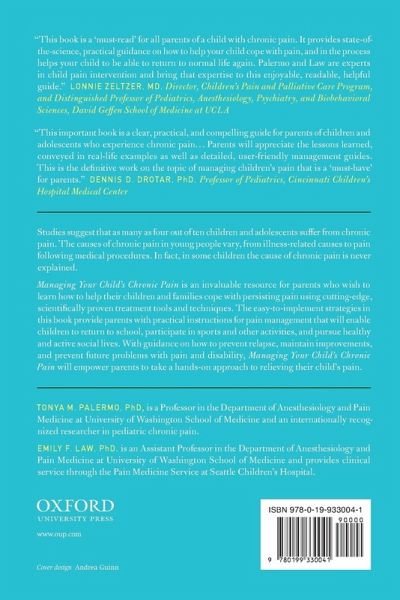 Tonya M. Palermo, Ph.D., is a Professor in the Department of Anesthesiology and Pain Medicine at University of Washington School of Medicine. Dr. Palermo is an internationally recognized researcher in pediatric chronic pain and has practiced clinically within several interdisciplinary pain programs as a licensed clinical psychologist. Emily F. Law, Ph.D., is an Acting Assistant Professor in the Department of Anesthesiology and Pain Medicine at University of Washington School of Medicine. Her research focuses on the role of psychological factors in pediatric chronic pain. She is a licensed clinical psychologist and provides clinical service through the Pain Medicine Service at Seattle Children's Hospital.