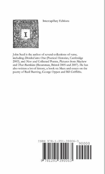 John Seed was born in 1950 and brought up in the North-East of England. He discovered a copy of Basil Bunting's Briggflatts in Ultima Thule bookshop in Newcastle-upon-Tyne one Saturday morning in 1968. It cost 10 shillings and sixpence. From this starting place he bought and read volume after volume of the Objectivists and the Black Mountain poets, one by one. And then Ezra Pound and William Carlos Williams. He sat in the dark corners of many Morden Tower poetry readings and subsequently met Ric Caddel, who first encouraged and published his work. He also corresponded with Charles Reznikoff and met George Oppen on a couple of occasions.A friend, a postgraduate student at Keele University, said he had a lecturer who talked about some of the same obscure American poets. And during the miner's strike of 1972, in a cold candle-lit pub in Newcastle-under-Lyne (or was it Hanley?), he met Andrew Crozier who pointed him to the work of some contemporary poets, especially those associated with Ferry Press and Grosseteste Review. He also found Nick Kimberley's poetry bookshop in Compendium Books in Camden Town - the best poetry library around at that time but expensive to visit.He lived and worked in Yorkshire from 1972 to 1983 studying and working at the Universities of Hull and Leeds. He also played dominoes and drank many pints of Tetley's bitter with John Riley - with whom he disagreed radically on almost everything.In 1983 he moved to London and has taught History at Roehampton University since. Here for several years he was lucky enough to have Allen Fisher as a colleague. He was also lucky enough to find in the mid-80s, moving through the shabby upstairs rooms of various West End London pubs, the Subvoicive readings - and to be part of a discussion group which met for several years at the Tooting house of Robert Sheppard and Patricia Farrell.This narrative seems to be organised around a series of lucky chances - but the bookshops, the reading groups, the small publishers and the committed poets were there for me to find, or to find me. So to all of the above - and to Bill Griffiths too - an opportunity to say thanks!